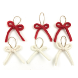 Set of six tiny bow ornaments | Three of each color: Natural and Red