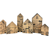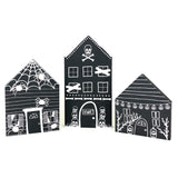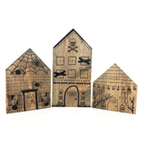 Set of three hand-drawn spooky wood houses in your choice of five finish options