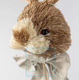 His burlap-lined ears are wired for shaping, allowing you to gently bend and pose them for added expression. A soft canvas bow sits just below his chin, available in a fresh mint green or neutral tone, giving him a subtle pop of seasonal color while maintaining a farmhouse-inspired look.