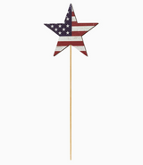 Our Antiqued Wooden USA Flag Star Pick offers classic Americana design with a rustic appearance. Use it for Fourth of July decorating or as a year-round patriotic accent in decorative containers, summer floral arrangements, or potted plants. This piece is 13.25" long while the star measures 4.75" across by 0.25" thick.