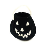 Felt Jack O Lantern candy buckets in two sizes | Both sizes are great for decorating. The mini size is also perfect for decorating or tiny baby trick or treaters while Large works great as a candy bucket for older kids.