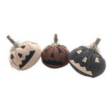 Stuffed mini jack o lantern pumpkins available in orange, gray or cream fabric