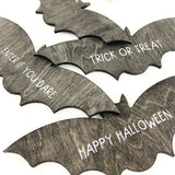 Wooden bat ornaments in three different sizes | Available in your choice of black or wood stain and four design options