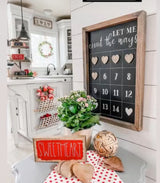 Includes 14 magnetic hearts in your choice of red felt or stained wood