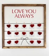 This heartfelt Valentine countdown is a meaningful way to celebrate love leading up to February 14. Featuring soft envelope artwork, delicate string details, and movable heart magnets, this framed piece allows you to count down the days with intention—one heart at a time.