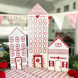 Set of three hand-drawn wood houses in your choice of white or stain finish