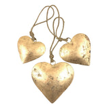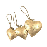 Set of three gold metal heart ornaments | Set includes one heart of each size: 3" 4" and 5"