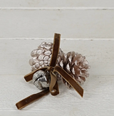 Champagne gold double pinecone ornament with ribbon bow. 4inWx2.5inL