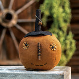 Happy stuffed fabric pumpkin with a flat bottom for display on shelves and tabletops. | Perfect for Halloween or Fall.