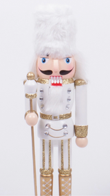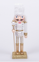 White and Gold 10" Wood Nutcracker. Hand Painted. | Perfect for Christmas