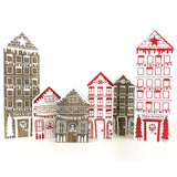 Set of three hand-drawn holiday wood houses in your choice of stain or white finish