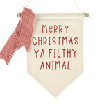 9x9 Canvas pennant with string to hang and coordinating ribbon | Available in red, green or black design