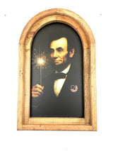 NEW arched wood framed wall art. Comes in 2 sizes: Medium (14zx22) and Large (18x30) and with George Washington or Abraham Lincoln holding a sparkler.