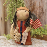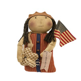 15" Decorative plush Lady Liberty figurine | Taupe linen-style fabric with stitched facial features and fabric accessories