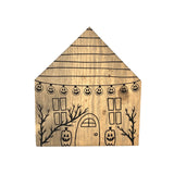 Set of three hand-drawn spooky wood houses in your choice of five finish options