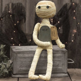 Weighted mummy doll that is wrapped head to toe in bandage-like material | Prop him up in a corner, on a shelf or stool.