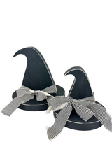 Wood standalone witch hats with ribbon trim | Avalable in two sizes