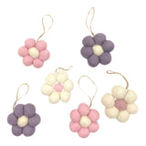 Set of 6 felt flower ornaments in pink, purple and white | Pairs perfectly with our jute trees