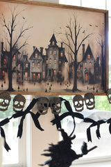 Wooden skull garland about 6 ft long. Each skull measures 4.5" tall. Crafted & assembled in Richfield, UT