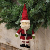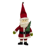 Stuffed Felt Santa with wooden Christmas tree ornament with a clear filament string hanger