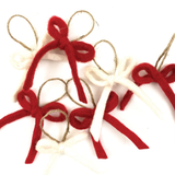 Set of six tiny bow ornaments | Three of each color: Natural and Red, Pink and White or Burgundy and White