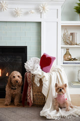 Pink hook pillow with red heart