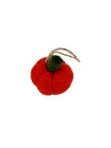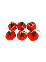 Set of 6 felt pumpkin ornaments with string for hanging. Available